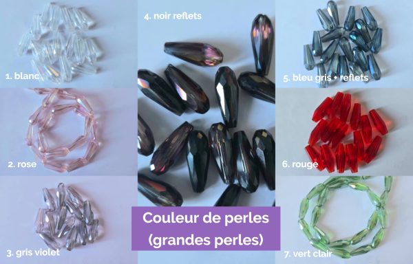 Evidemment que je conseillerais de choisir les couleurs du croquis si ton style correspond et surtout si tu cherches un bijou élégant, aux couleurs légères tout en ayant beaucoup de caractère. Le vert pastel (ou vert clair) du fil va apporter beaucoup de douceur surtout couplé aux petites perles 5 (bleu gris) et grande perle 7 (vert)